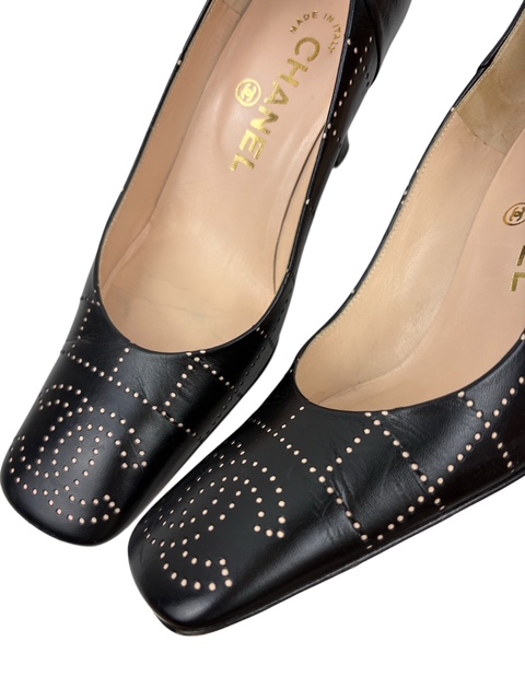 01PパンチングCCマーク入カーフXウッドパンプス¥10,000(税込¥11,000)
