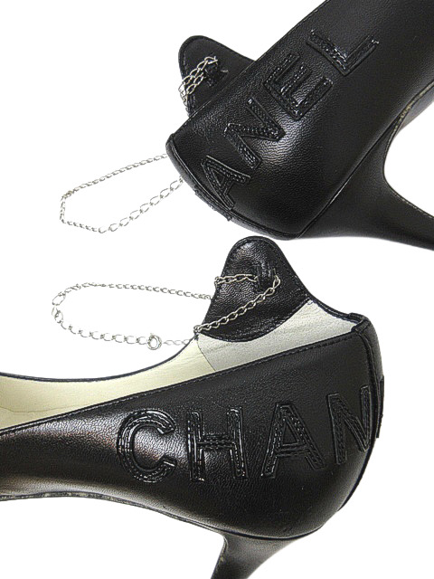 大人気!10Aアンクルチェーン付ロゴ入コンビパンプス¥35,000(税込¥38,500)
