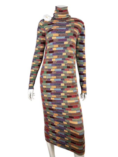 18Aハンブルグライン配色カシミア混ニットワンピースSOLD OUT