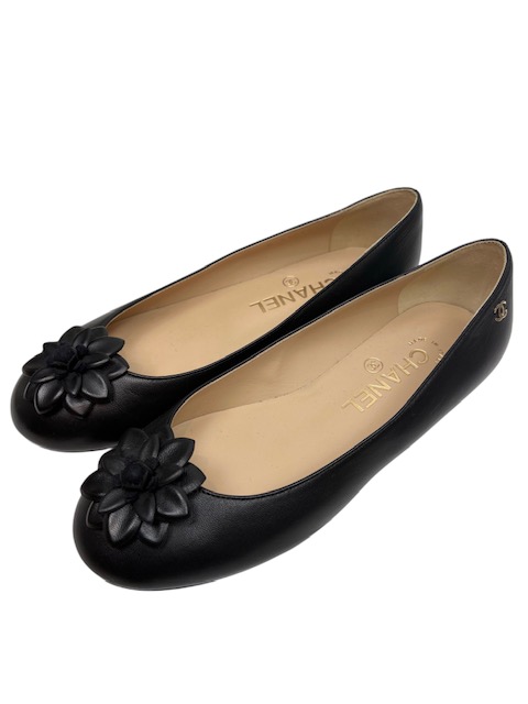 新同!15Pカメリア&CCマーク付カーフバレエシューズ¥19,000(税込¥20,900)