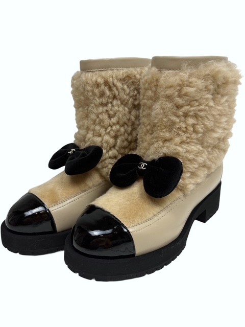 未使用!25Nココネージュ・リボン付シアリングラムムートンブーツ・定価394,900円¥140,000(税込¥154,000)