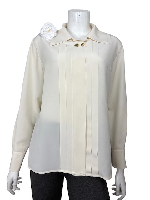 ヴィンテージ!ゴールドCC付シルクプリーツ開襟ブラウス¥25,000(税込¥27,500)