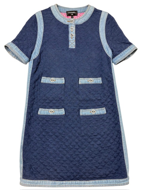 大人気!20SSビジューCCボタンデニムトリムキルティングワンピース¥59,000(税込¥64,900)