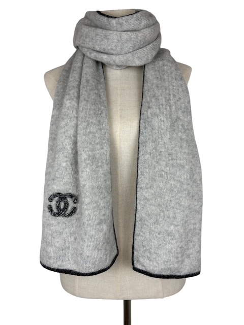 ラメ入CCマークが可愛いカシミアXシルク混の大判ストールと同デザイン手袋のお得なセットです♪