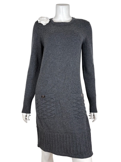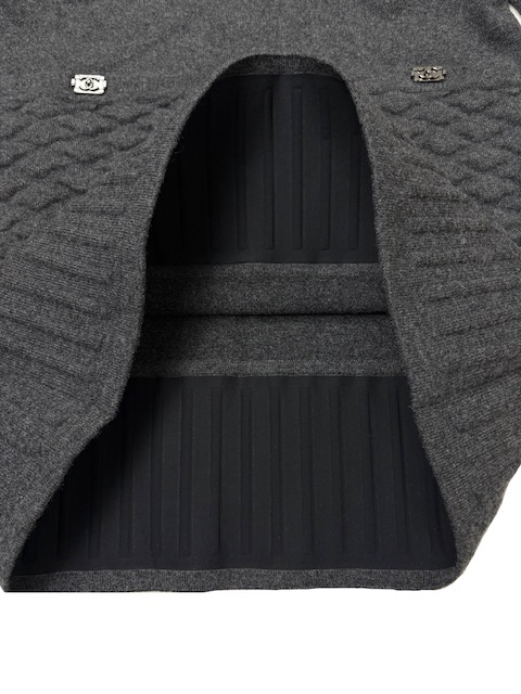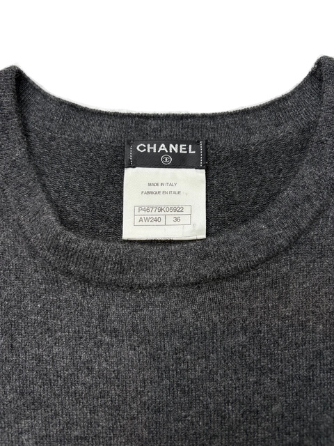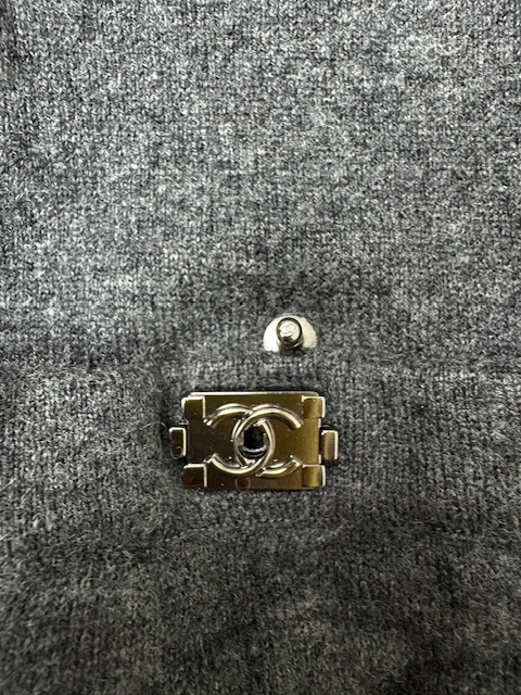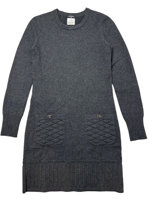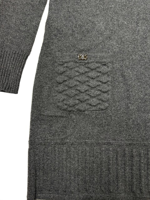 大人気のボーイシャネルのプッシュロックCCボタンが付いたキルティングポケットのカシミア混ニットアンピースです♪