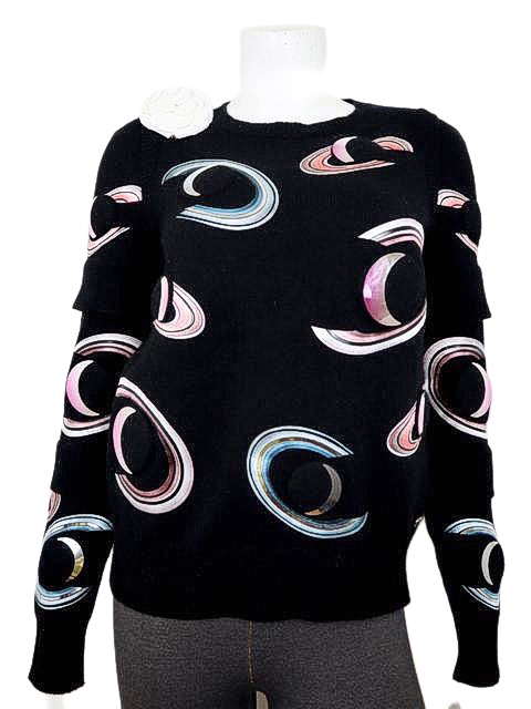 ぷくぷく立体のメタル宇宙デザインがオシャレなカシミアニットです。袖はレイヤードデザインです♪