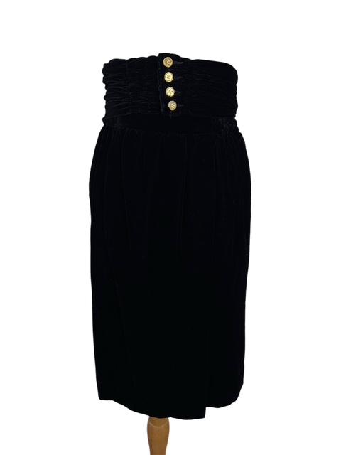 ヴィンテージ!クローバーボタン飾りベルト付ベルベットスカート