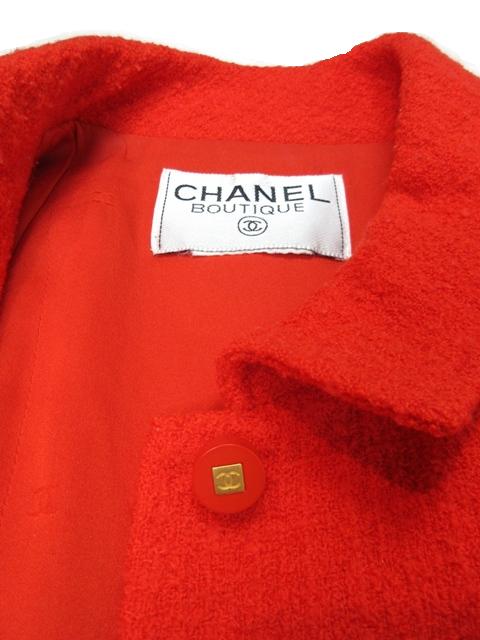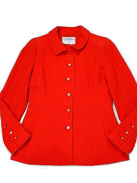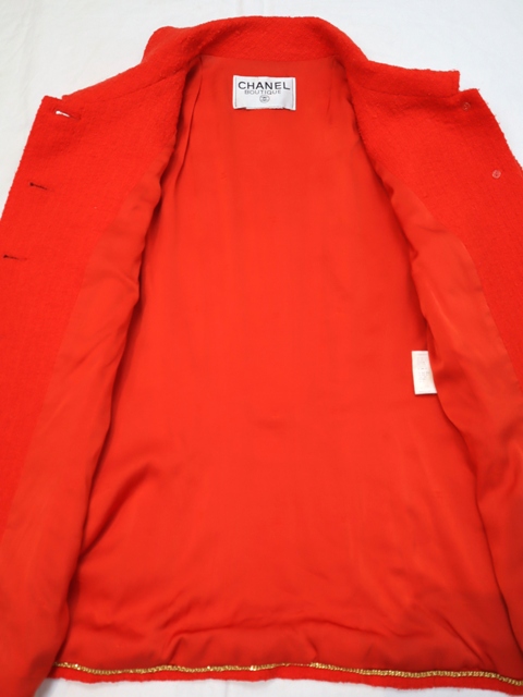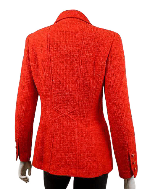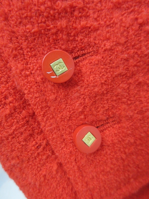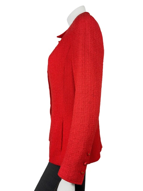綺麗な朱赤カラーのツイードジャケットです。クロXゴールドCCボタンです☆