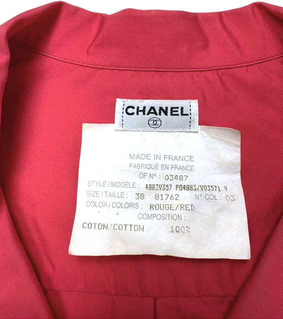 ヴィンテージ!ゴールドCCボタン付コットン開襟ブラウス