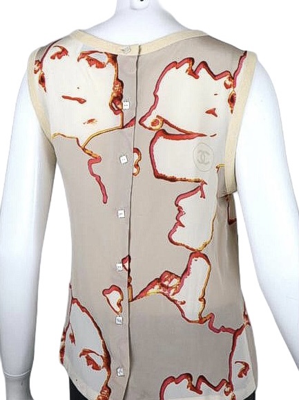マドモアゼルとCCマークがプリントされた人気のゴールドラメトリム後ろボタンブラウスです♪