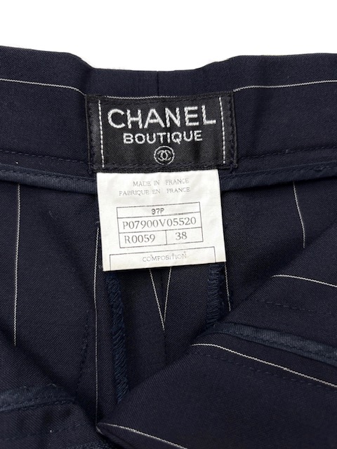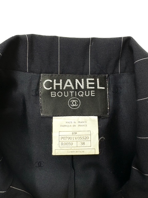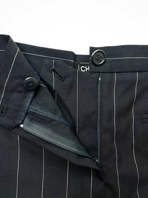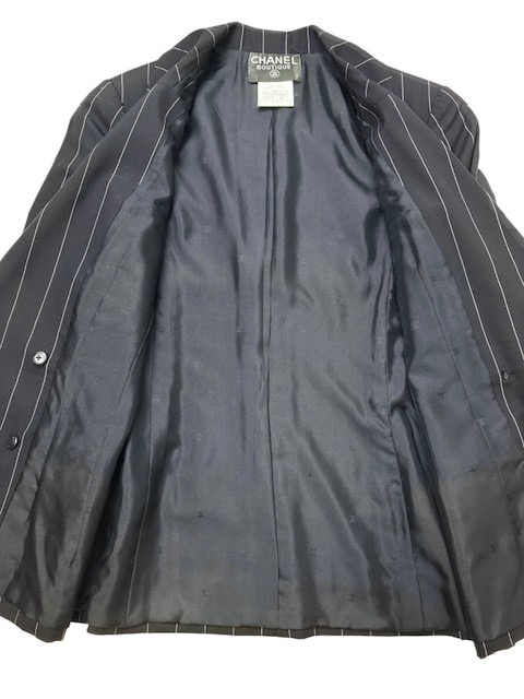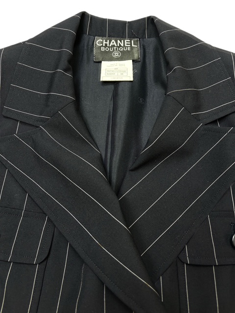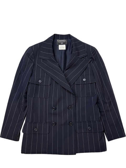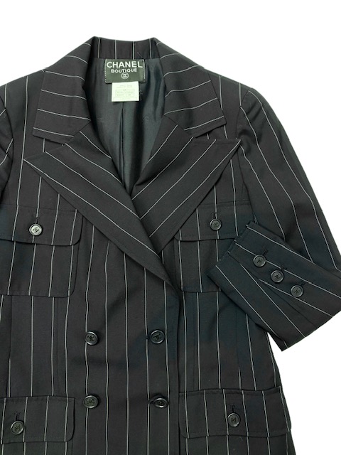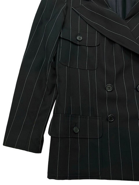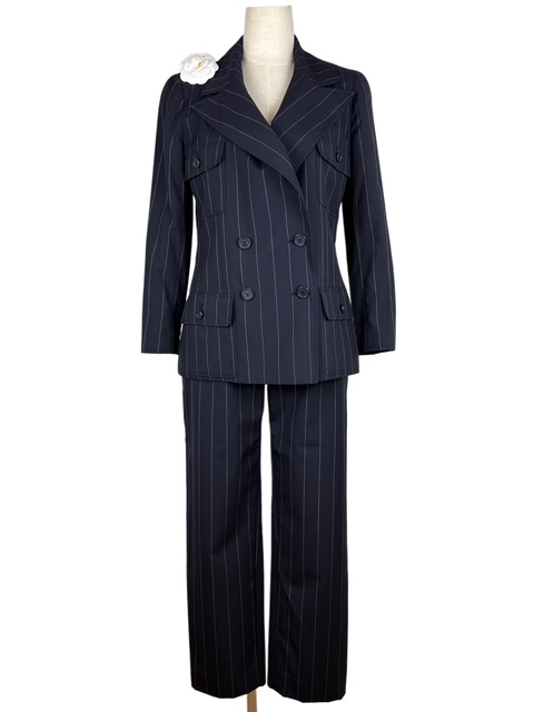 CCボタンがたくさんのマニッシュなピンストライプのダブルジャケットXパンツスーツです♪