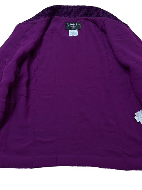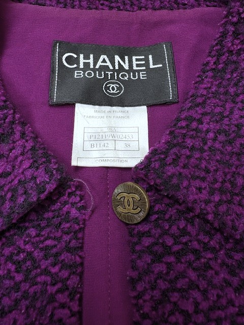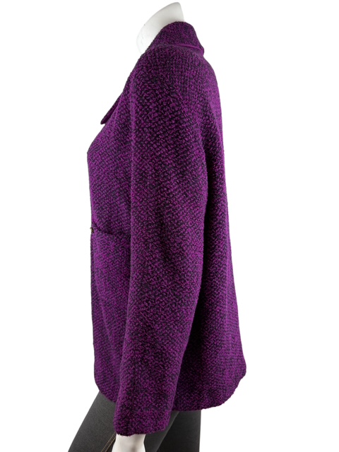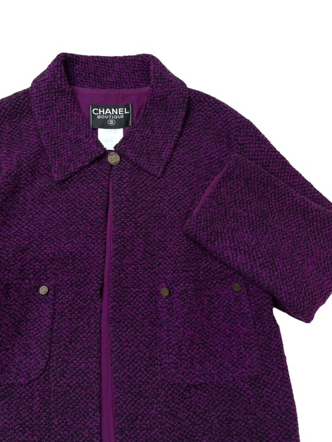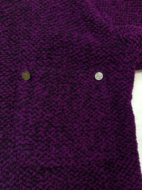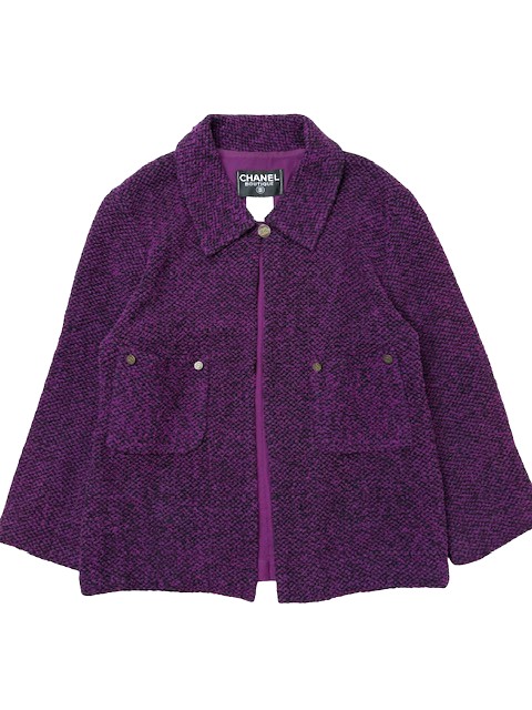 パープルXクロMIXの柔らかいソフトツイード素材ジャケットです。襟元CCワンボタンです♪