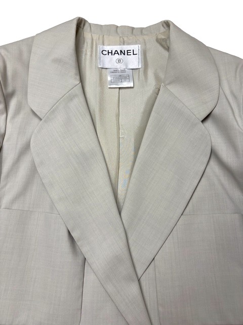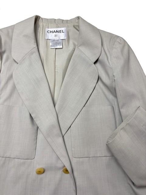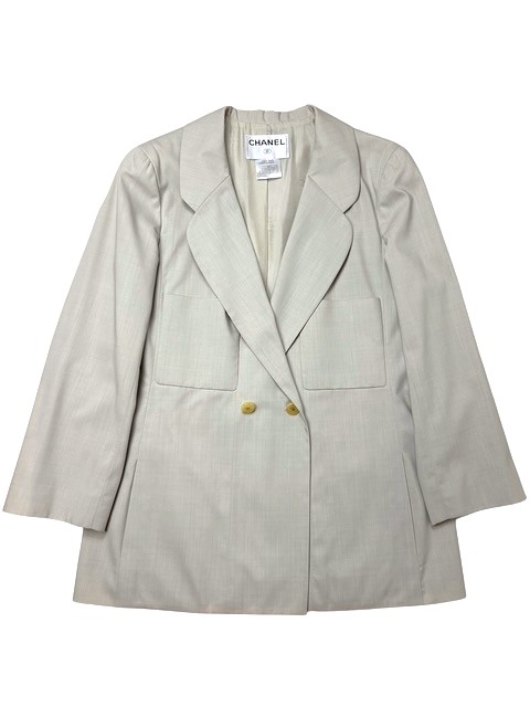 マニッシュな薄手ウール素材のダブルロングジャケットです。ラメ入りCCボタンがオシャレです♪