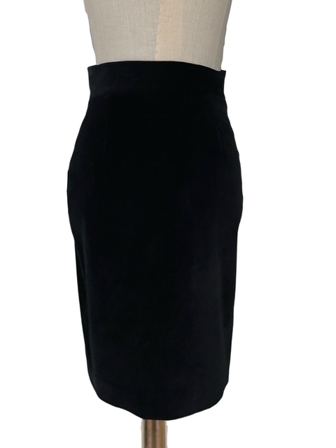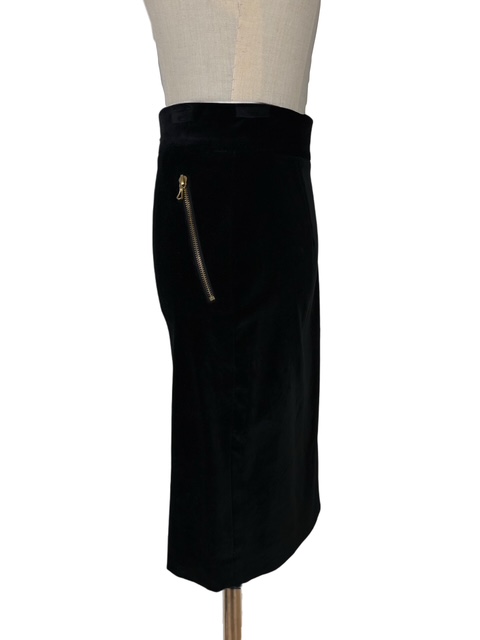 ストレッチが入ったベロア素材ハイウエストペンシルスカートです。CCチャーム付ジップデザインです♪