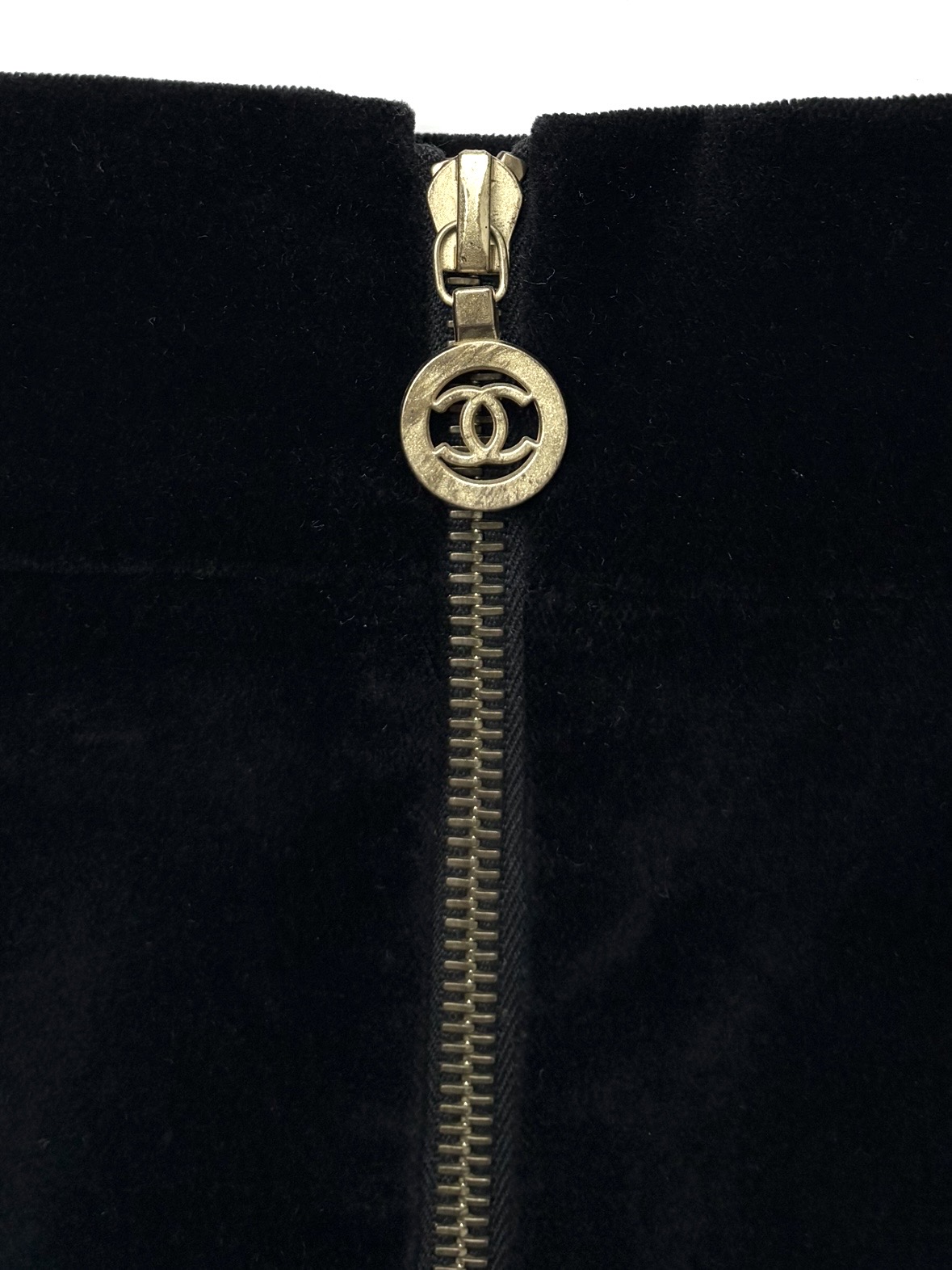 大人気ヴィンテージ!CCチャームジップ付ストレッチベロアスカート