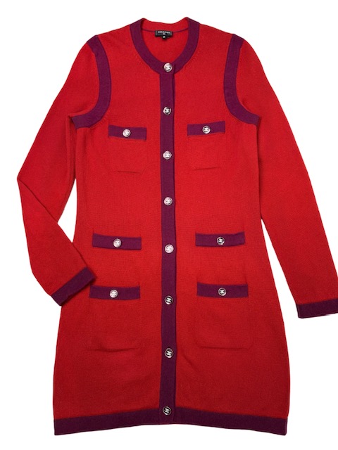 大人気!きらきらCCボタン付23AWカシミアワンピースカーディガン