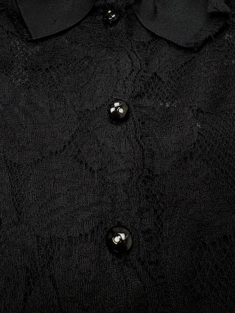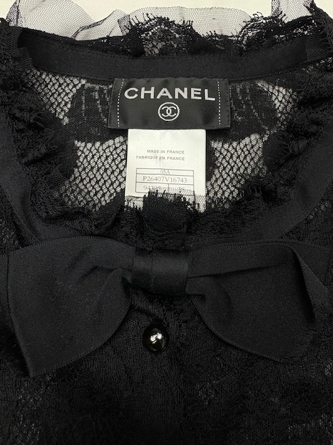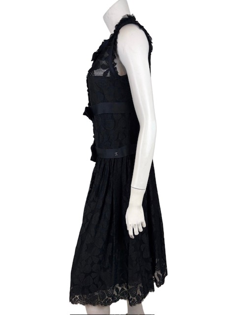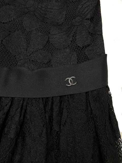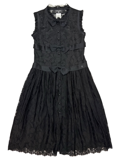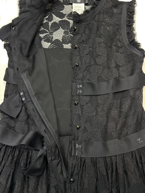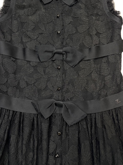 シャネルらしい素晴らしいエンブロイダリーレース×リボンデザインのブラックドレスです♪