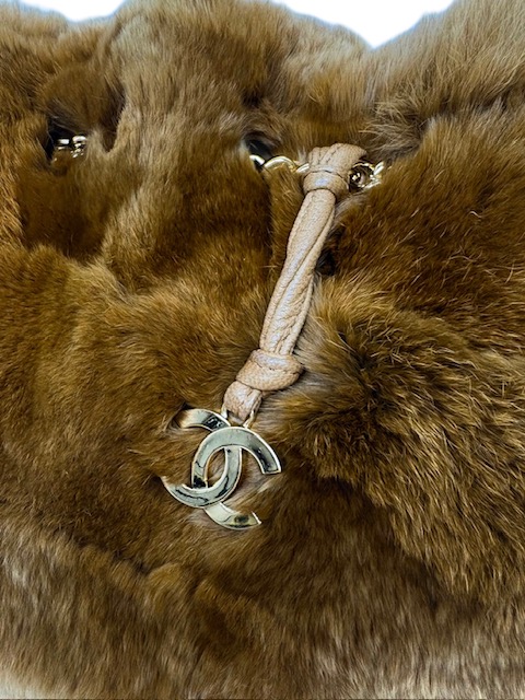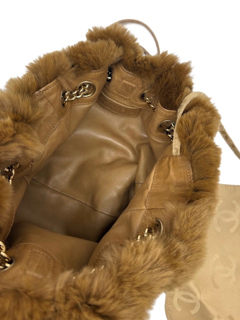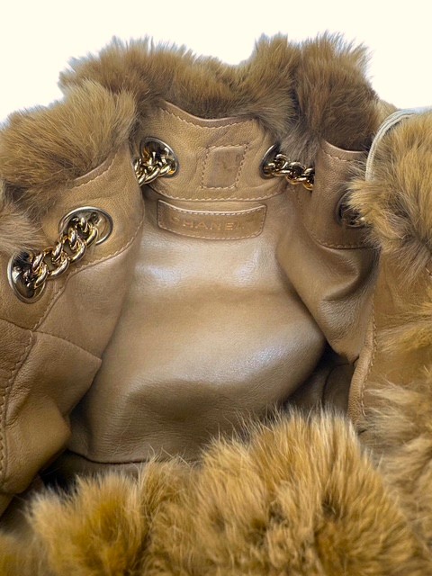 ゴールドCCチャームが付いたラグジュアリーなファー素材のチェーントートです。内部ポーチ付です♪