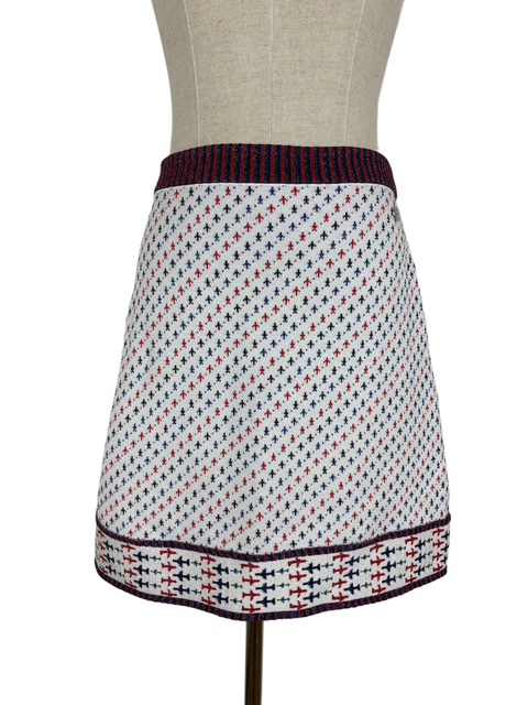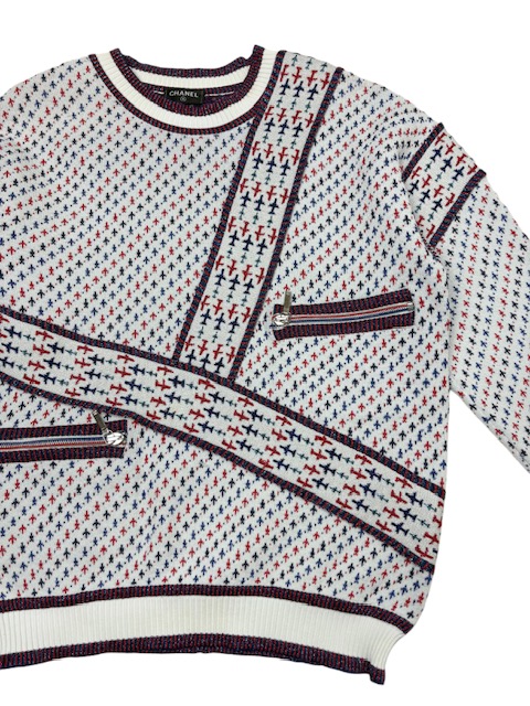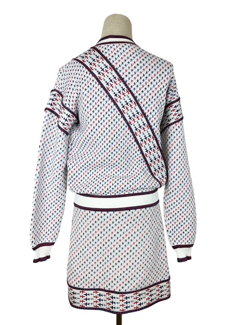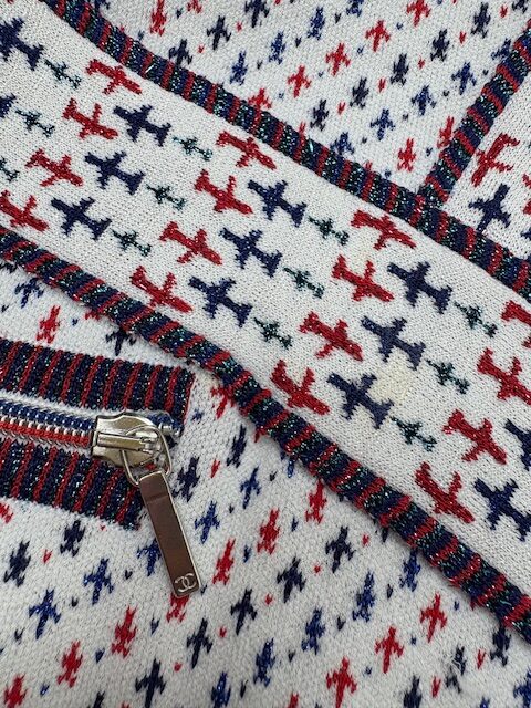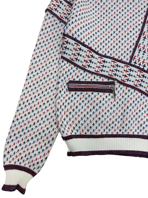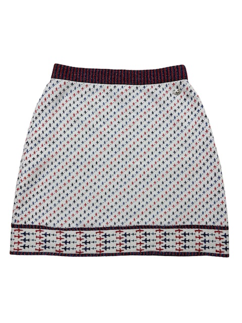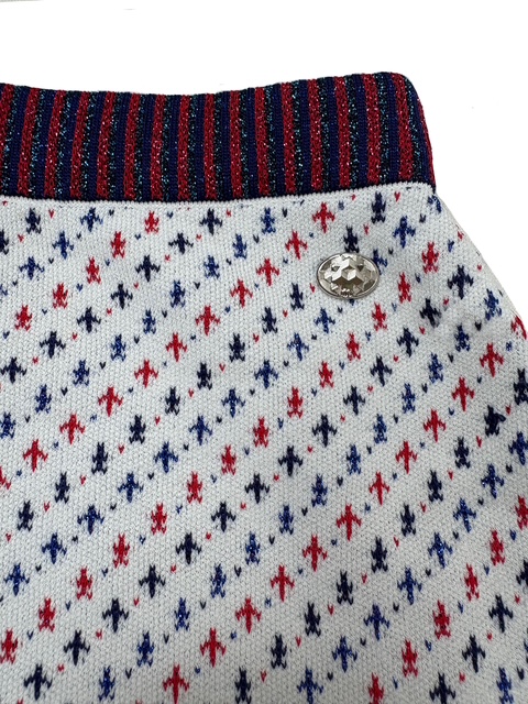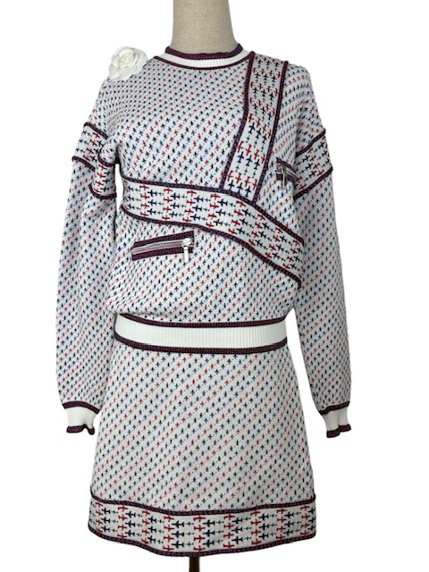 トリコロールの飛行機ラメステッチが可愛いファスナーポケット付トップスと台形スカートのお得なセットです。