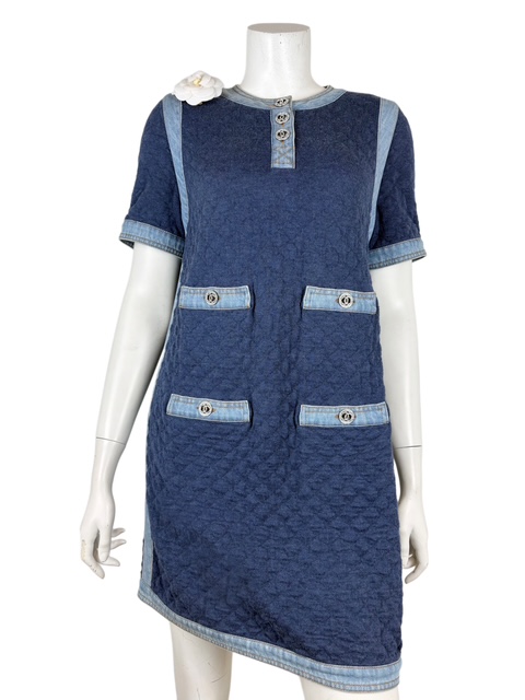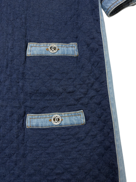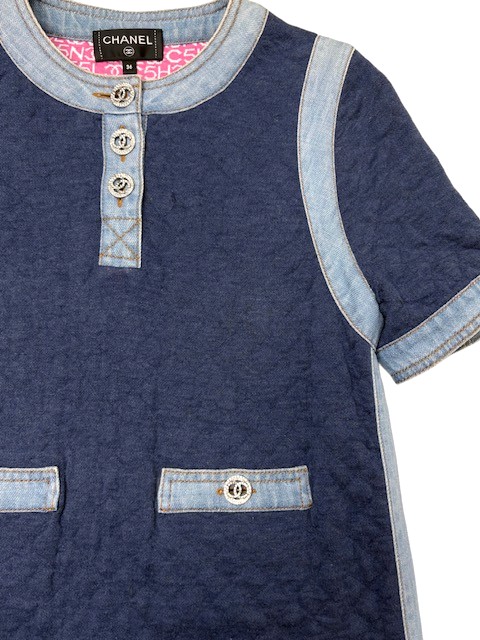 大人気!20SSビジューCCボタンデニムトリムキルティングワンピース