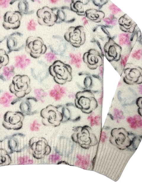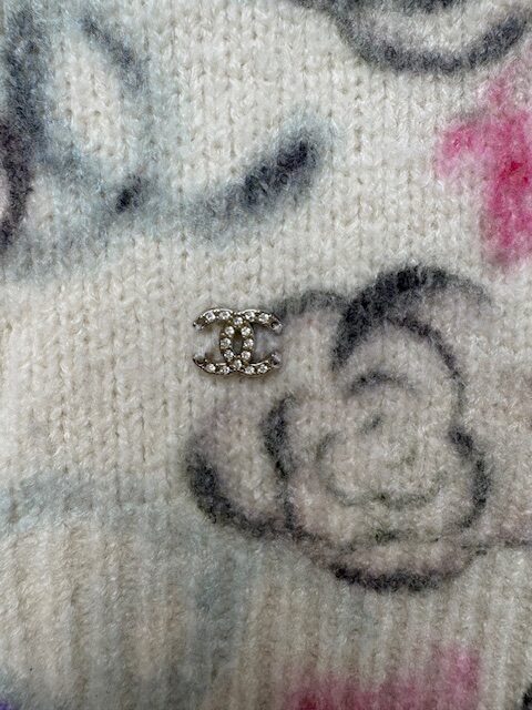 大人気ココネージュコレクションの即完売カメリアモチーフXCC柄ニットです。ラインストーンCC付♪