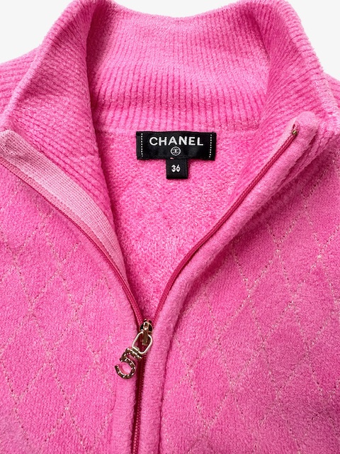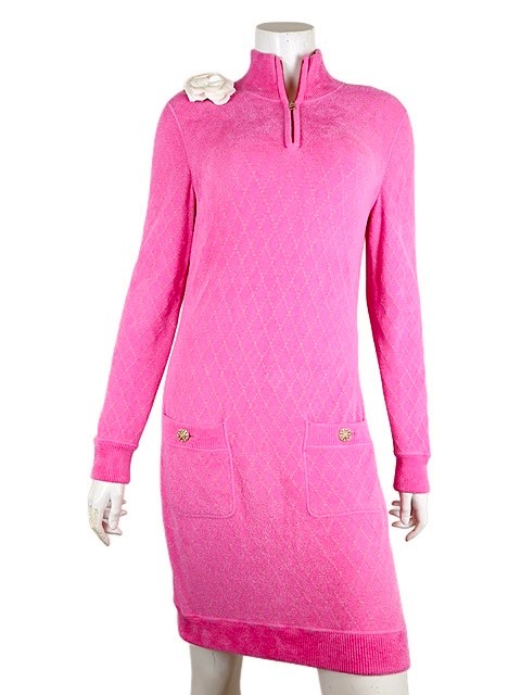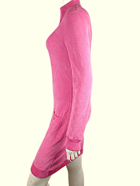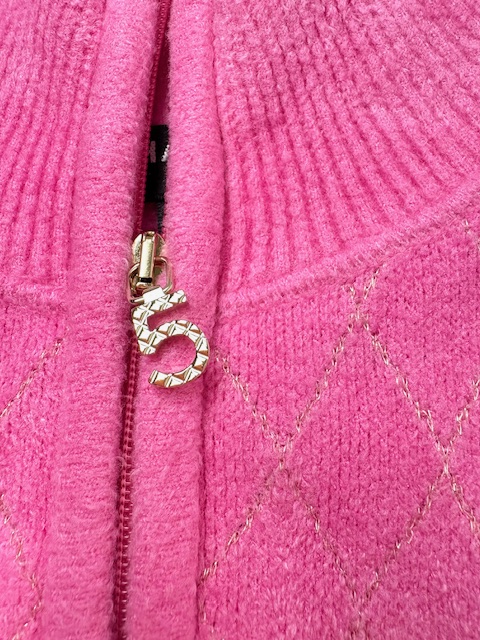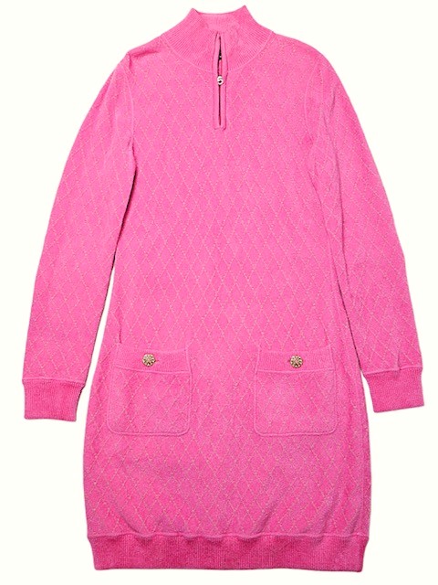 ゴールドのマトラッセステッチが入ったラグジュアリーなニットワンピースです。ファスナートップにNO.5チャーム付♪