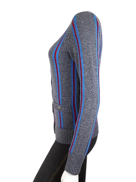新同!16Bロゴボタンストライプカシミアカーディガン