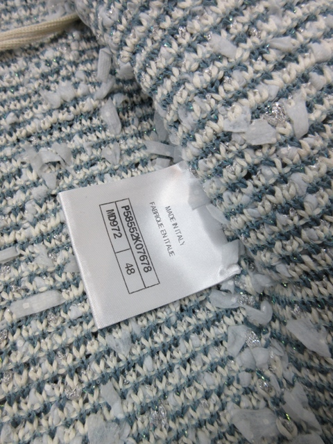 新同!18Pフリンジリボンツイードニットジャケット・クリアCCボタン