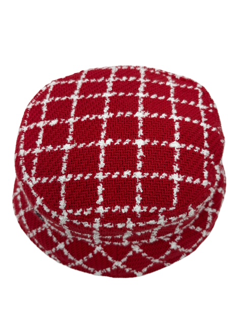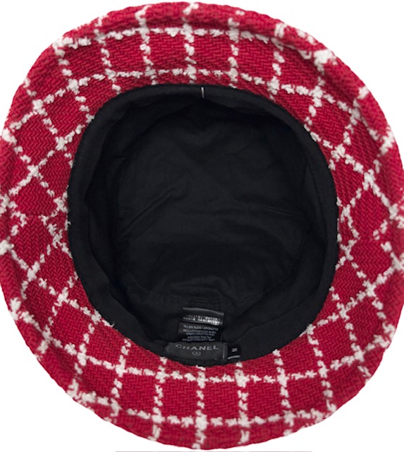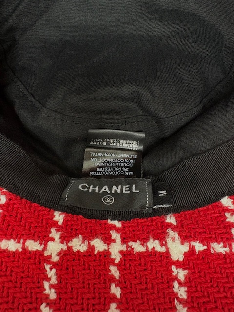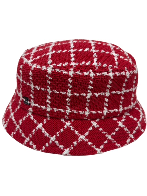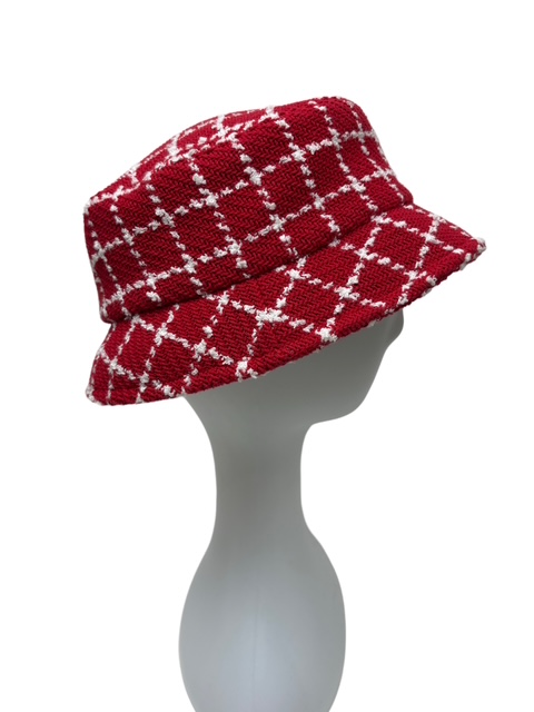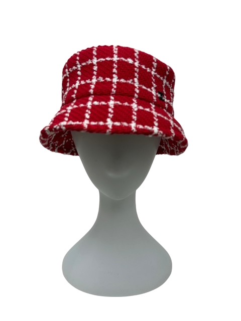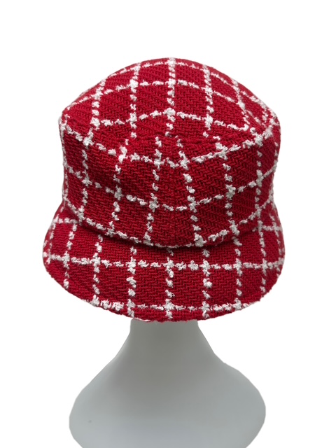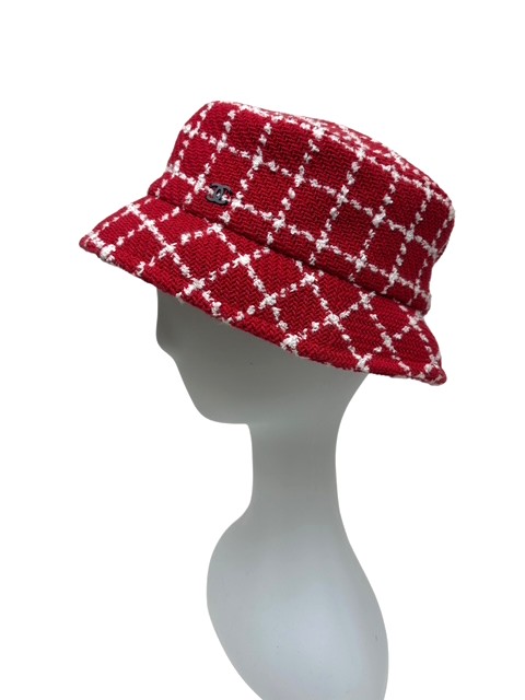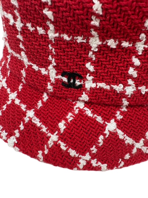 大人気2023クルーズラインのコットンツイードバケットハットです。アカチェックにクロCCマーク付♪