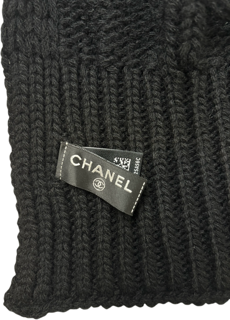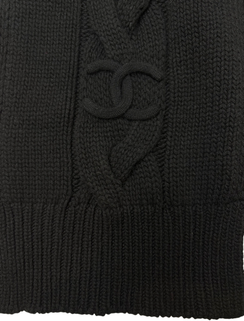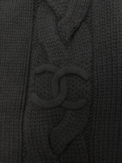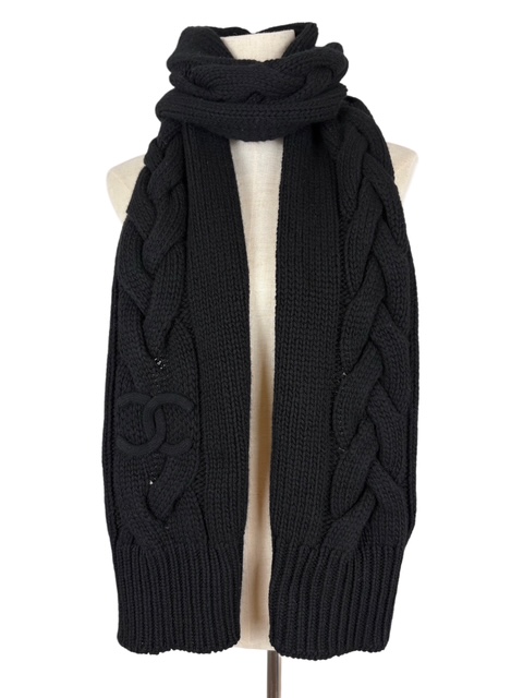 2025AWコレクションのCCマークケーブル編みデザインのカシミアロングマフラーです。ユニセックスで使えます♪
