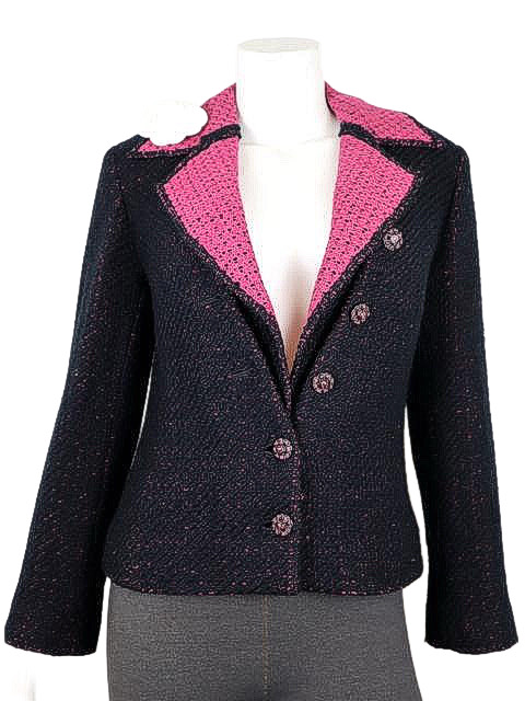 未使用タグ付!22KフラワーCCボタンバイカラーツイードジャケット