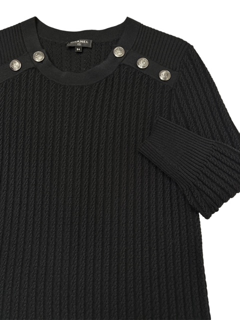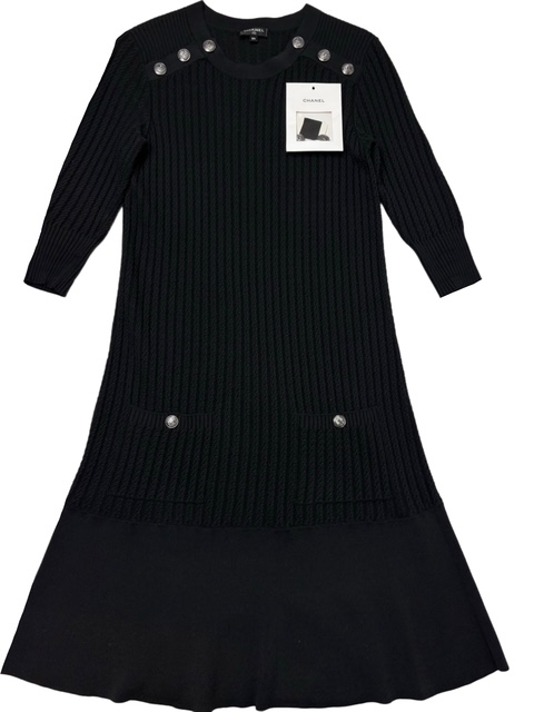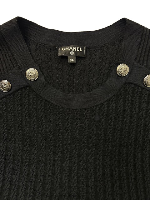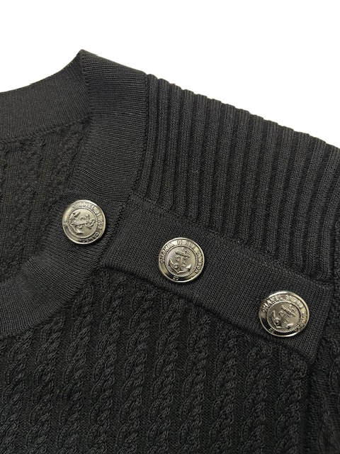 両肩にハンブルグラインのイカリCCボタンが付いた裾フレアーデザインニットワンピースです♪