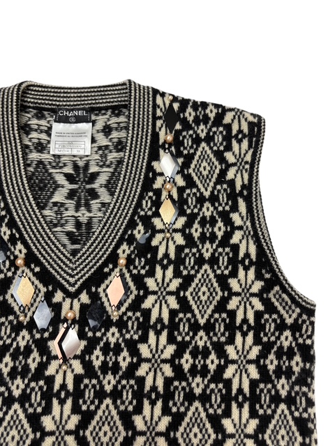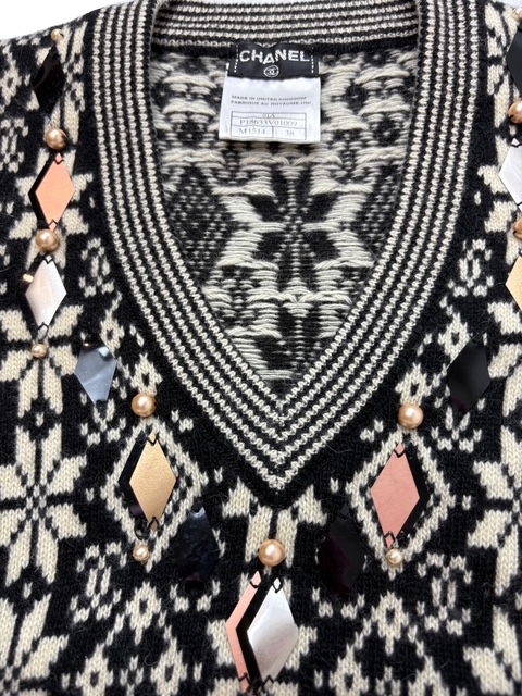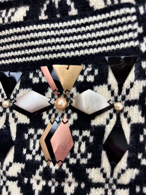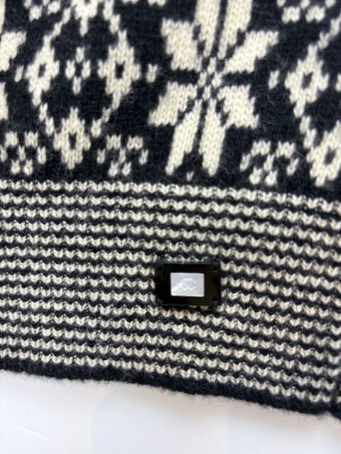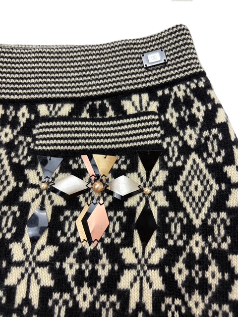 メタルモチーフとフェイクパール飾りが付いたCCマーク&ノルディック柄のカシミアSETです♪