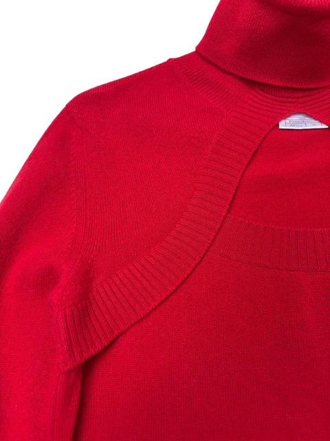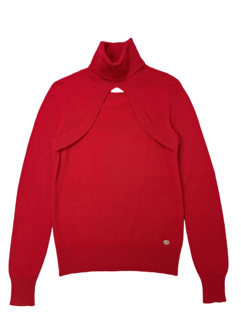 首元が開いたレイヤードデザインが素敵なカシミアタートルニットです♪