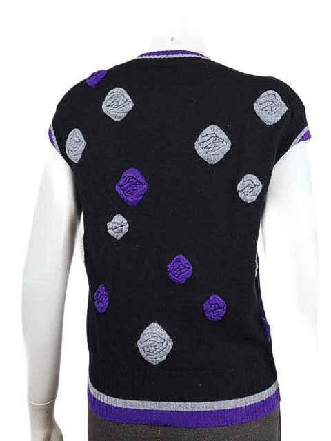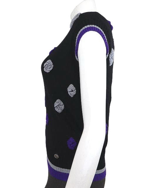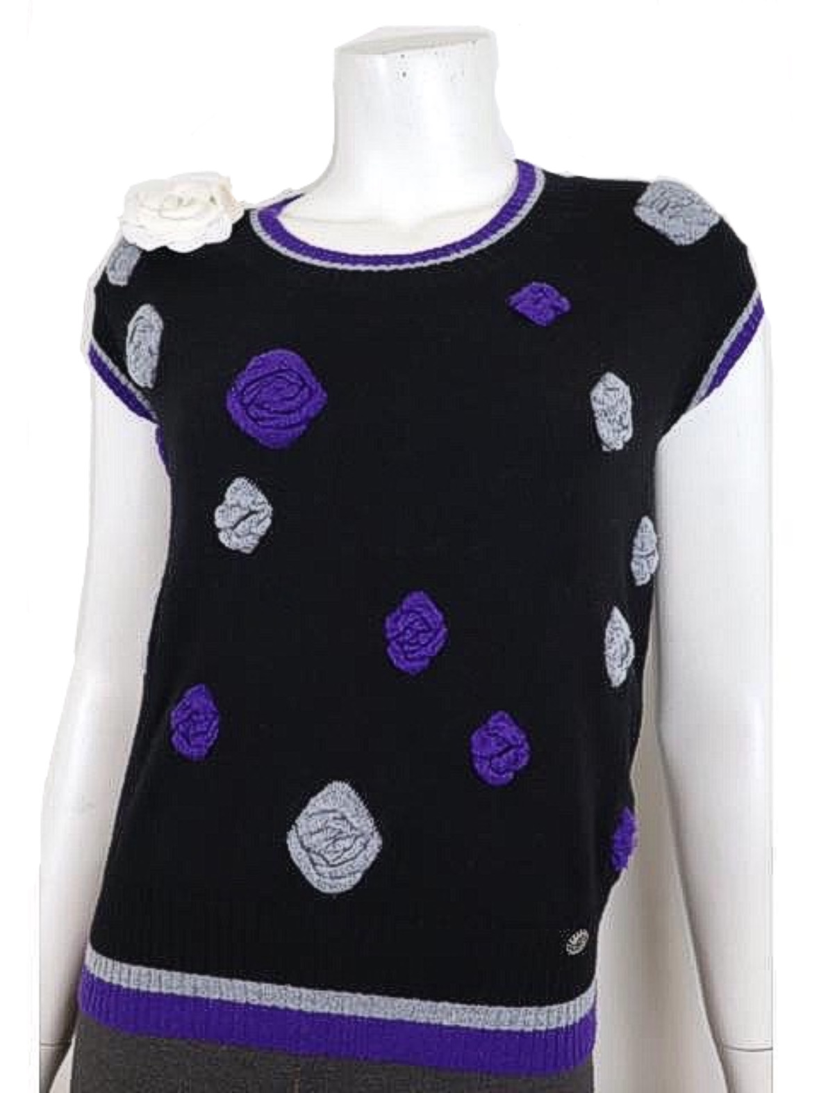 大小の立体カメリアモチーフがキュートな配色ニットです。パープル×グレーが素敵です♪