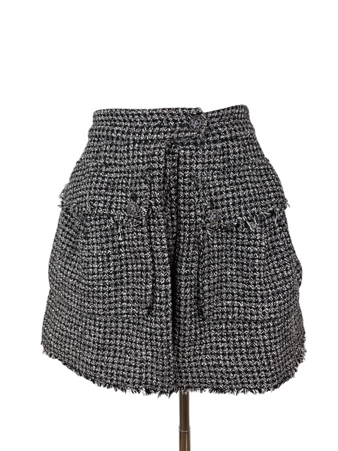 大きめ立体ポケットが付いたモノトーンツイード素材のたっぷりフレアースカートです♪