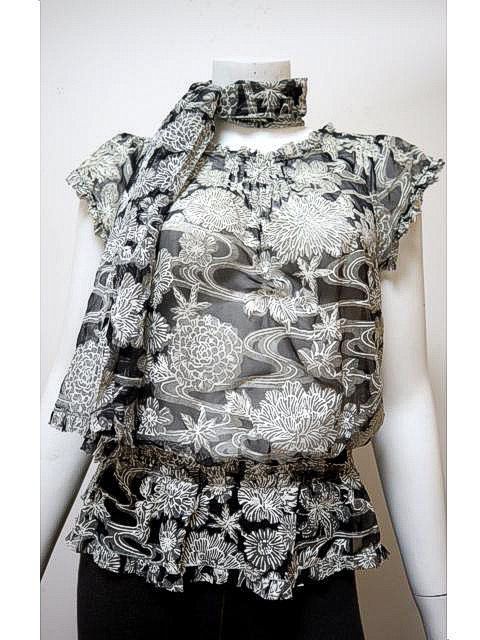 CCマークXフラワープリントの同布ストール付シフォントップスです。ウエスト部分ゴム使用でふんわりシルエットです♪