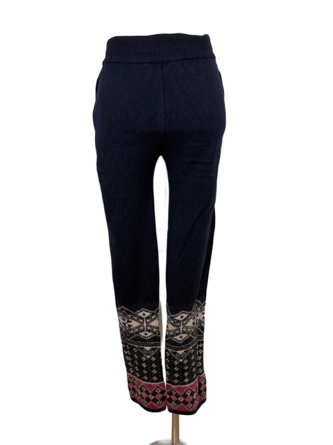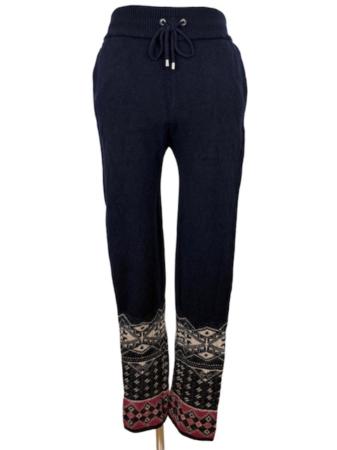 裾に可愛いトライバル柄が入ったカシミア混のニットパンツです。1枚でもスカートやワンピースに合わせても素敵です♪