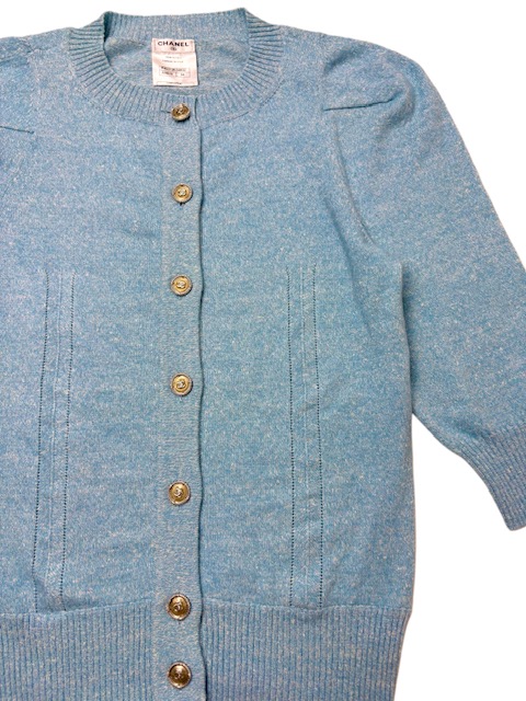 ゴージャスなCCボタンが素敵なカシミアXリネン混のカーディガンです♡