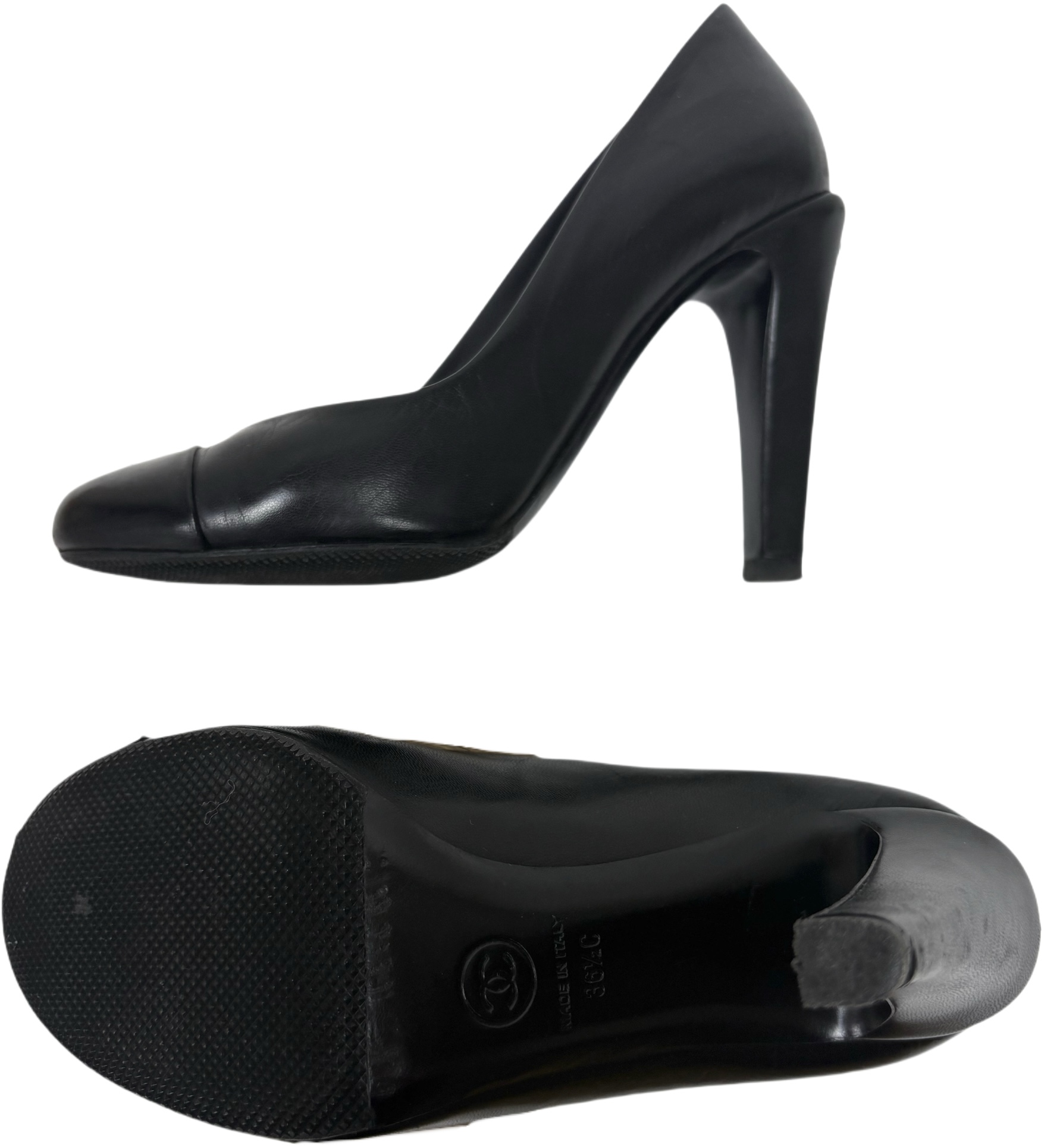 シャネル定番のトゥ部分CCマーク入のカーフパンプスです♪