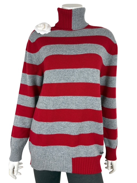 グレーX赤のお色合わせが素敵なオーバーサイズカシミアニットです♪