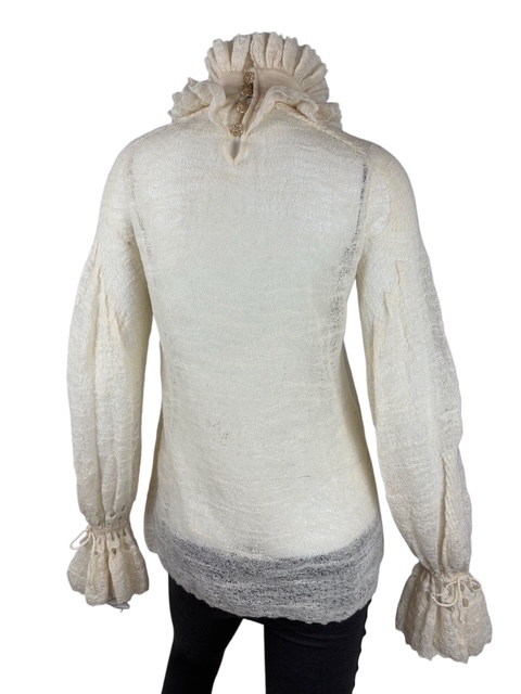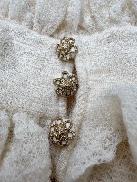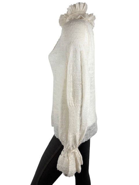 後ろ獅子ボタンが付いたフリルたっぷりデザインが素敵なバルーン袖ニットです♪