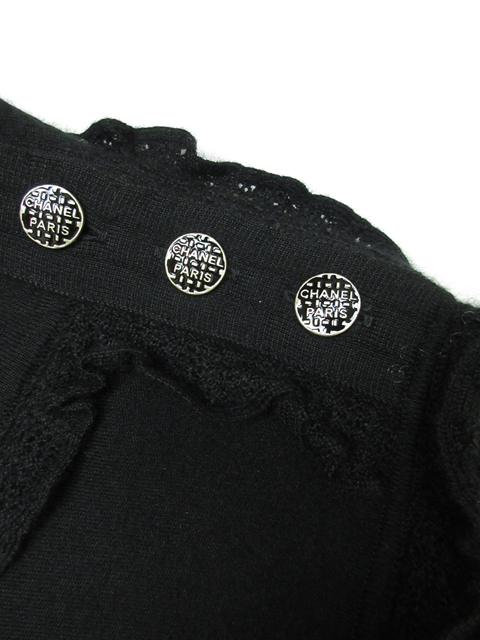 16A肩CHANELボタン付フリルトリムカシミア混ワンピース