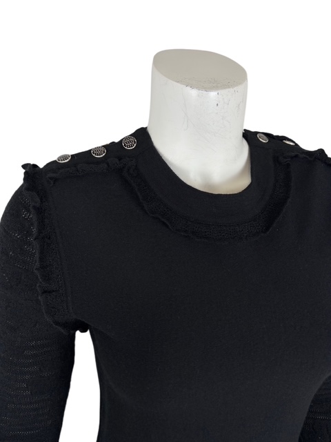 16K肩CHANELボタン付フリルトリムカシミア混ワンピース