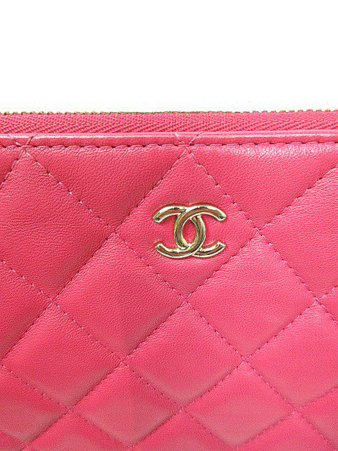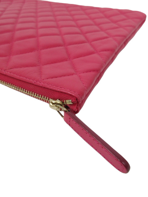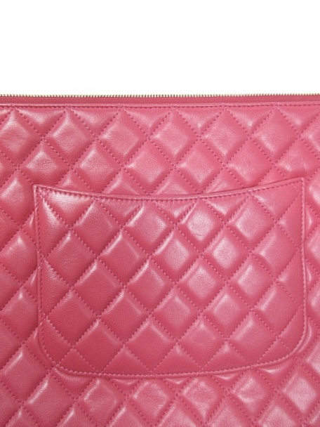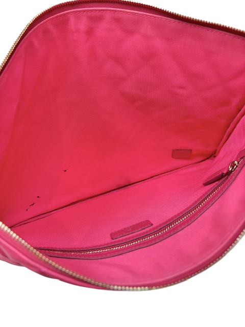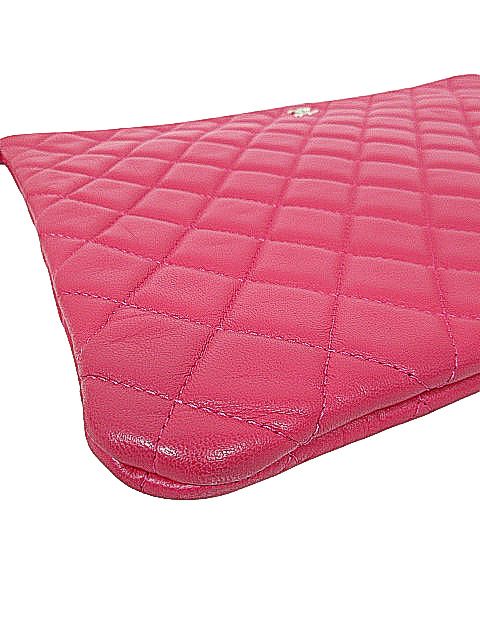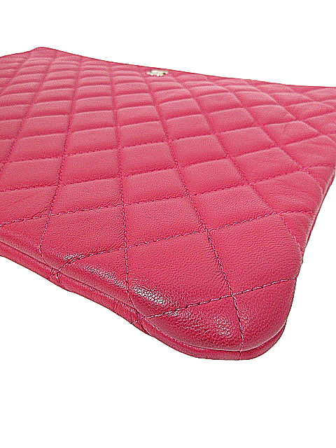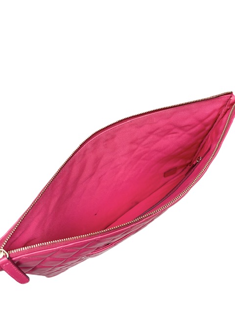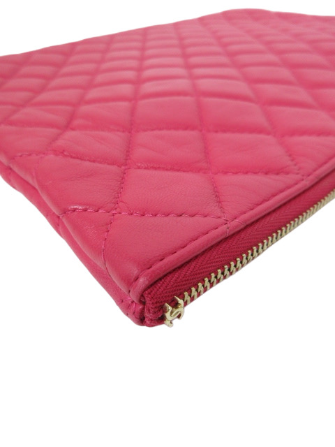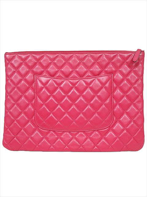 キュートなピンクレッドカラーのラムスキンクラッチバッグです。人気のラージサイズです♪