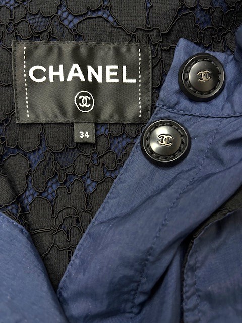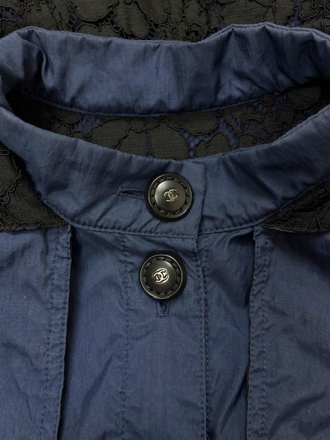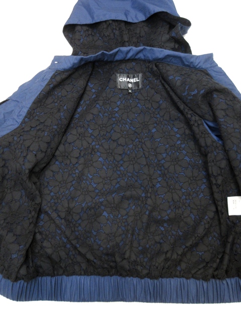 裏地に可愛いレースが施されたアンブレラヨークデザインのブルゾンです。大きめCCボタンです♪