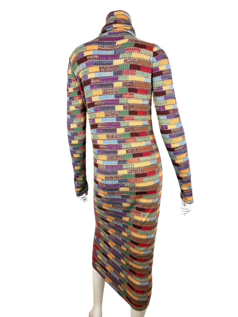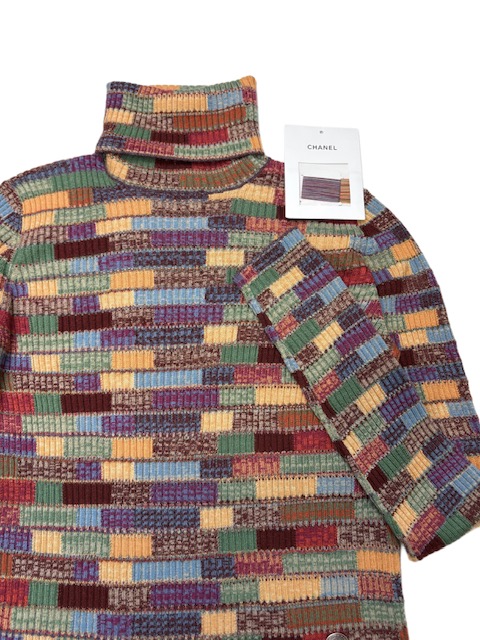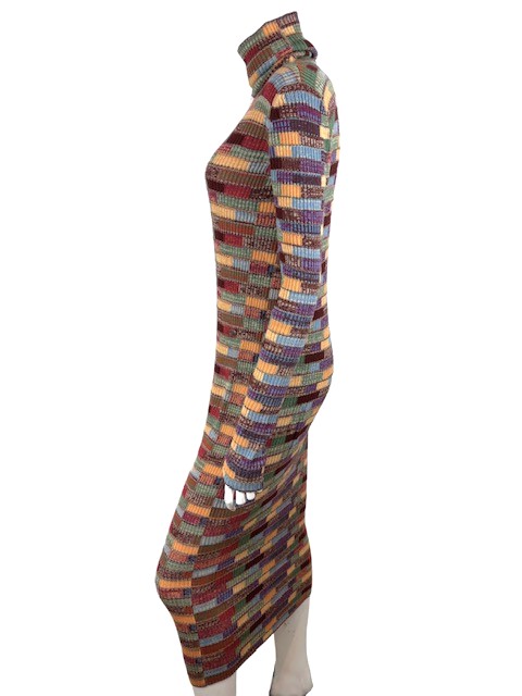 色合わせが素敵なマルチカラーのタートルニットワンピースです。たっぷりロングデザインです♪