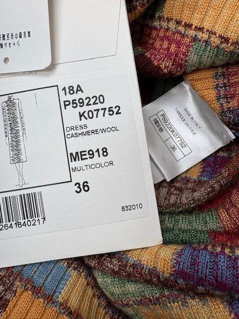 18Aハンブルグライン配色カシミア混ニットワンピース