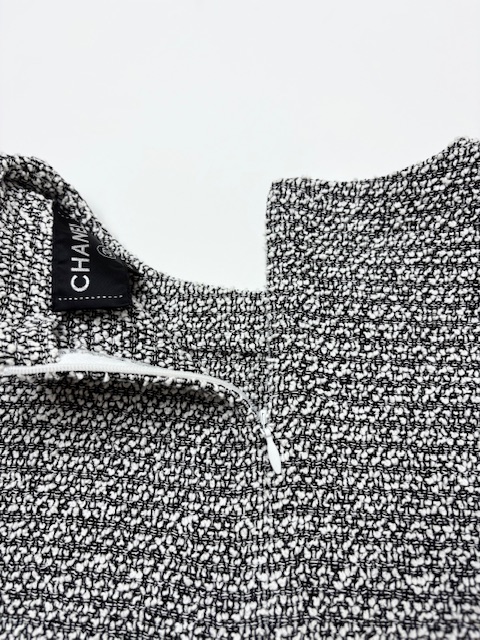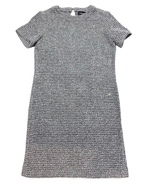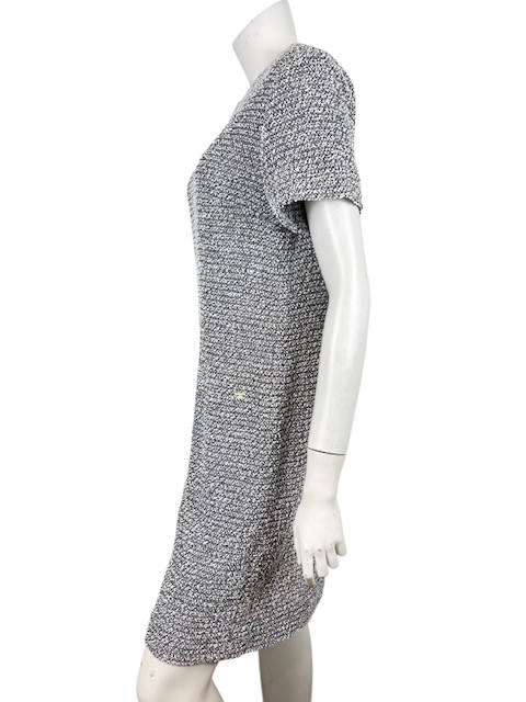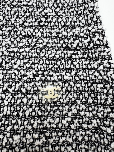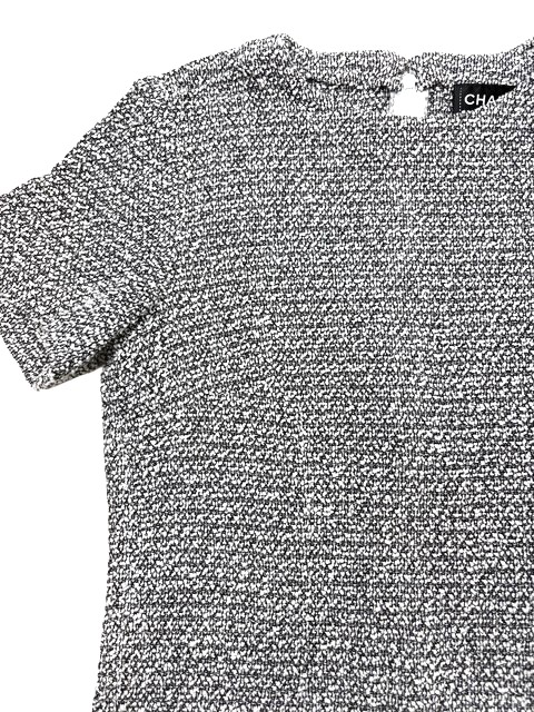 クリアーCCボタンが可愛いシンプルで大活躍するモノトーンツイードのワンピースです♪