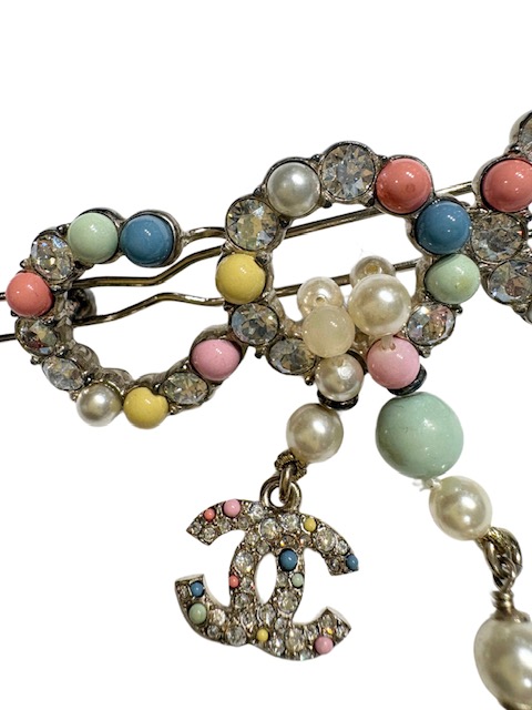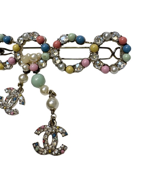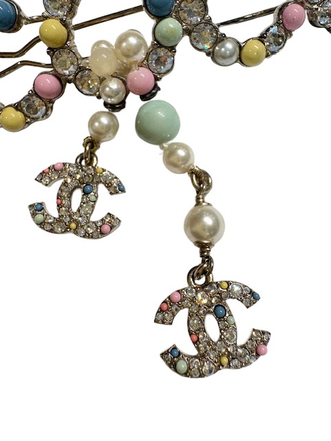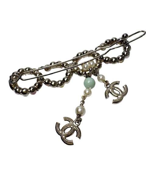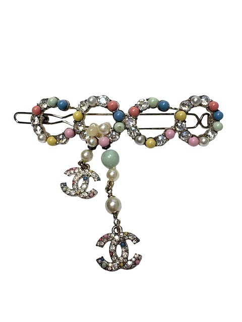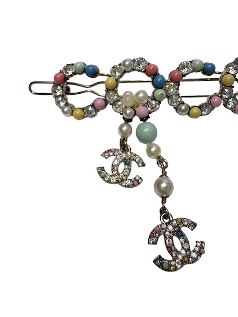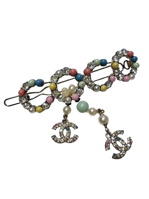 カラフルな大きめCOCOモチーフに揺れるラインストーンCCが付いた人気のバレッタです♪